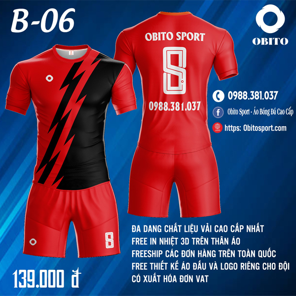 Obito Sport là đơn vị thiết kế, may trang phục thi đấu bóng đá hàng đầu việt nam. Những bộ đồng phục được in chuyển hoàn toàn không bong chóc từ logo, tên, số và họa tiết trên áo. Điều này cho phép đồng phục có trọng lượng rất nhẹ; thể hiện màu sắc rực rỡ và thiết kế táo bạo mà bạn không thể đạt được với trang phục thi đấu truyền thống.